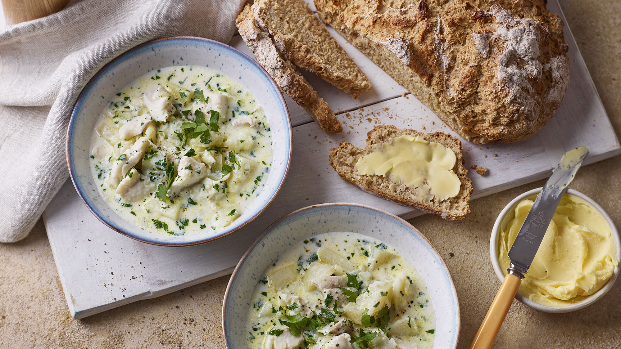 A plate Cullen Skink with bread and butter Cullen Skink is a creamy fish soup made with smoked haddock, potatoes, and onions. This comforting dish is a staple in Scottish homes.