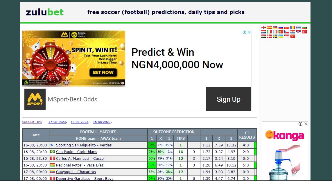 The homepage of the Zulubet website While ZuluBet might not bask in the same widespread recognition as some of its football prediction counterparts, it undoubtedly shines as a remarkable destination for insightful forecasts shared by genuine bettors. What sets ZuluBet apart is its dedication to providing a platform where enthusiasts can tap into the expertise of authentic gamblers. In a landscape often dominated by larger names, ZuluBet carves its niche by emphasizing the value of firsthand experience and knowledge from those who are deeply entrenched in the world of sports betting.