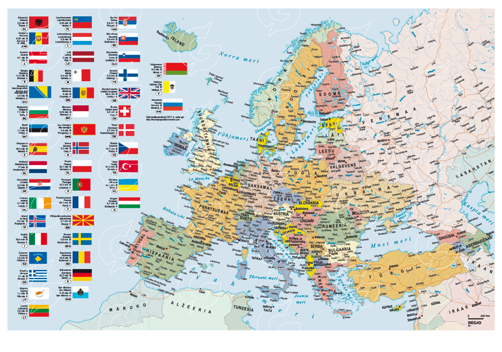 The Nordic countries (Iceland, Norway, Sweden, Finland, and Denmark); the British Isles(the United Kingdom and Ireland); W Europe (France, Belgium, the Netherlands, Luxembourg, and Monaco); S Europe (Portugal, Spain, Andorra, Italy, Malta, San Marino, and Vatican City). Central Europe (Germany, Switzerland, Liechtenstein, Austria, Poland, the Czech Republic, Slovakia, and Hungary); and SE Europe (Slovenia, Croatia, Bosnia and Herzegovina) (Estonia, Latvia, Lithuania, Belarus, Ukraine, Moldova, the European portion of Russia, and by convention the Transcaucasian countries of Georgia, Armenia, and Azerbaijan).
