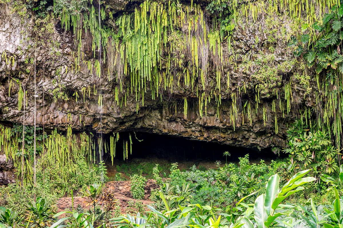 This unique natural lava rock grotto, covered in hanging ferns and tropical foliage, is a magical and romantic spot. The only way to reach it is by a leisurely, 2-mile open-air boat cruise along the Wailua River. The Smith's Kauai Fern Grottotour includes Hawaiian music, stories, and a short nature walk through the rainforest, with amazing acoustics at the grotto itself.