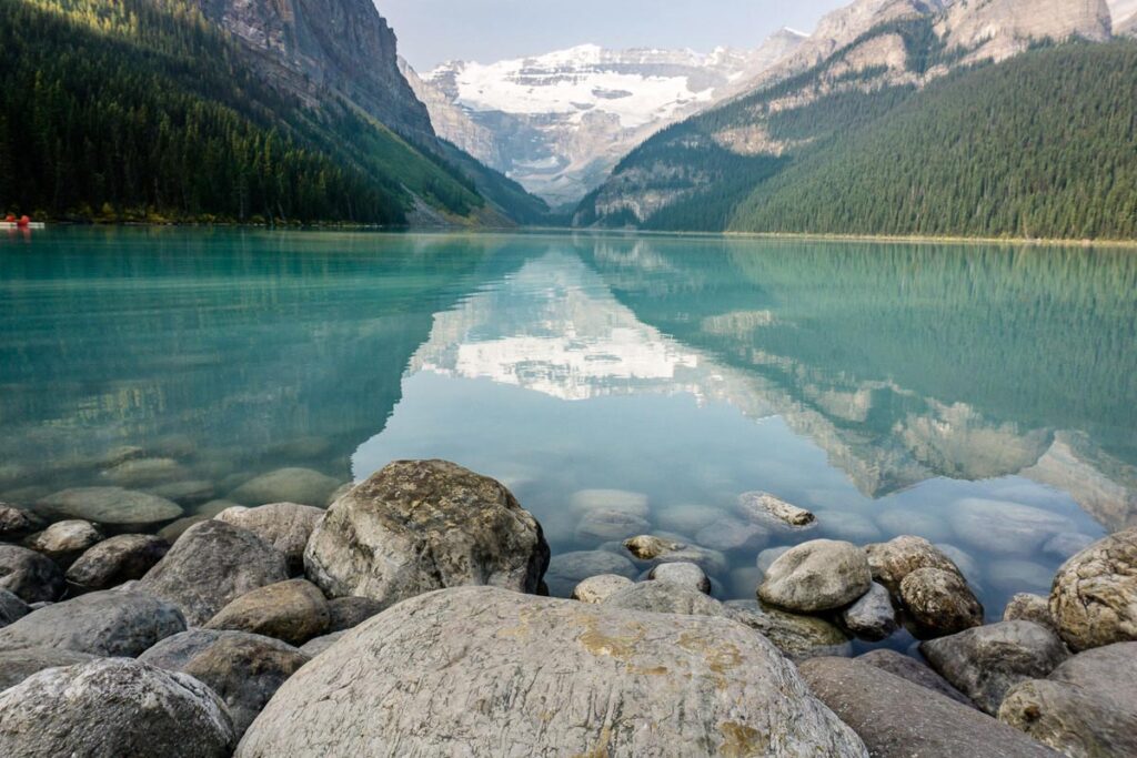The Mount Victoria glacier reflects on Lake Louise Taking public transit provided by Roam or reserving a seat on one of the Parks Canada shuttles in advance will provide the greatest possible experience.