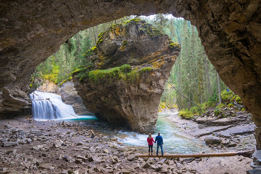 A couple tourist traveling Banff National Park According to Banff & Lake Louise Tourism, the region was identified as a tourism hotspot and was designated as a reserve in 1885 to protect the springs and surrounding area from development.