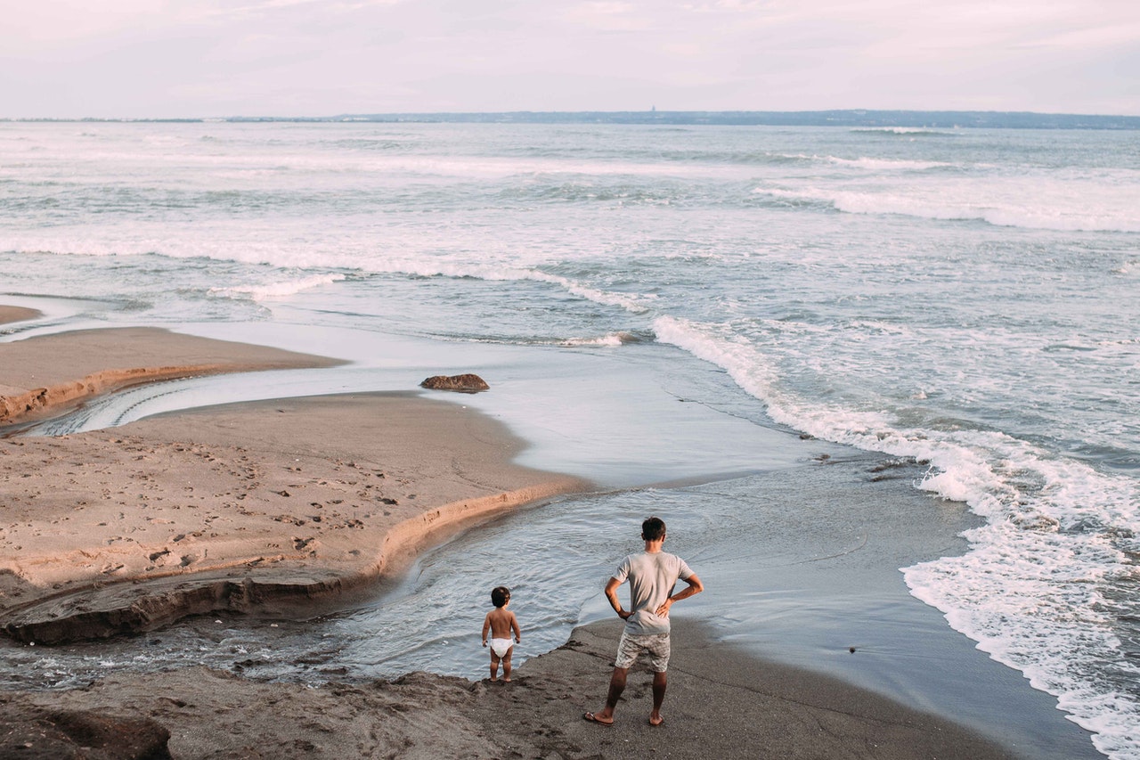 Man and Toddler Standing Near the Seashore Villa Eilenroc
