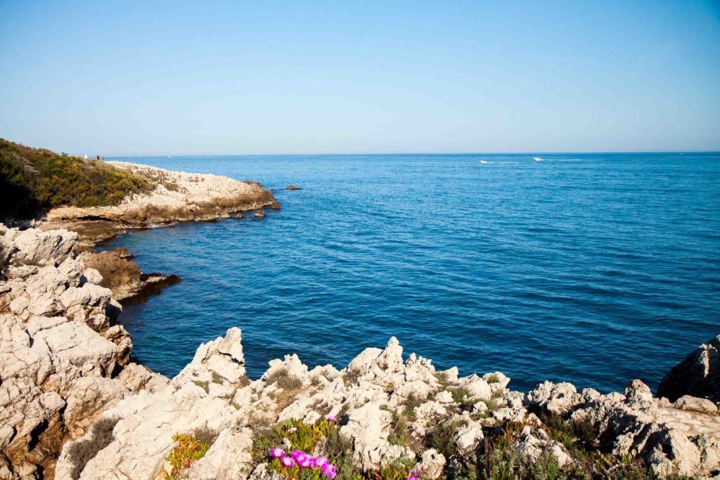 You may swim here, or have a picnic like the family in the center, stroll back to Plage de la Garoupe for lunch or swim in around 15 minutes of simple, somewhat peaceful road walking.