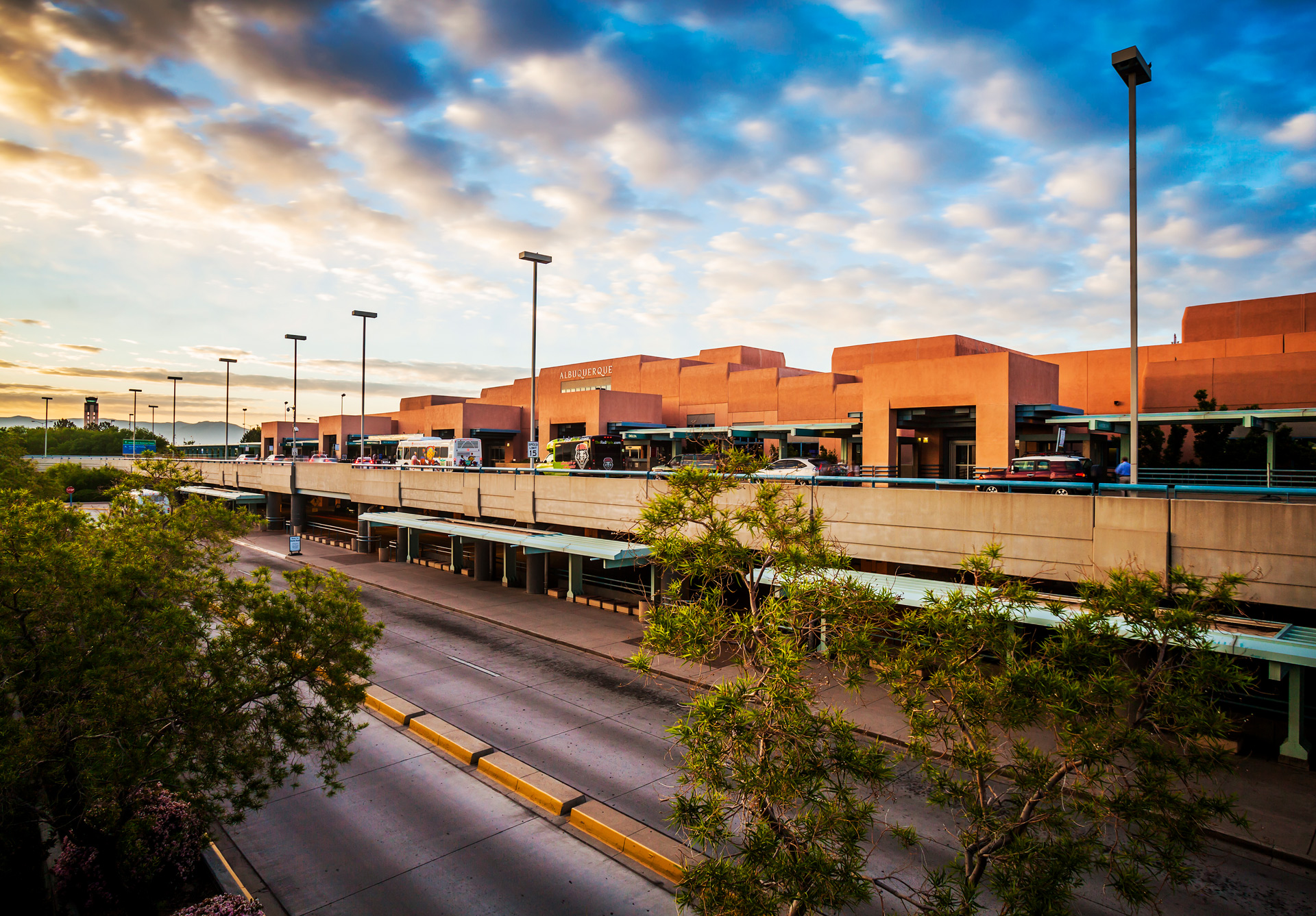 As New Mexico’s largest airport, Albuquerque International Sunport (ABQ)welcomes travelers with a distinctive blend of Southwestern hospitality and Pueblo-inspired architecture.
