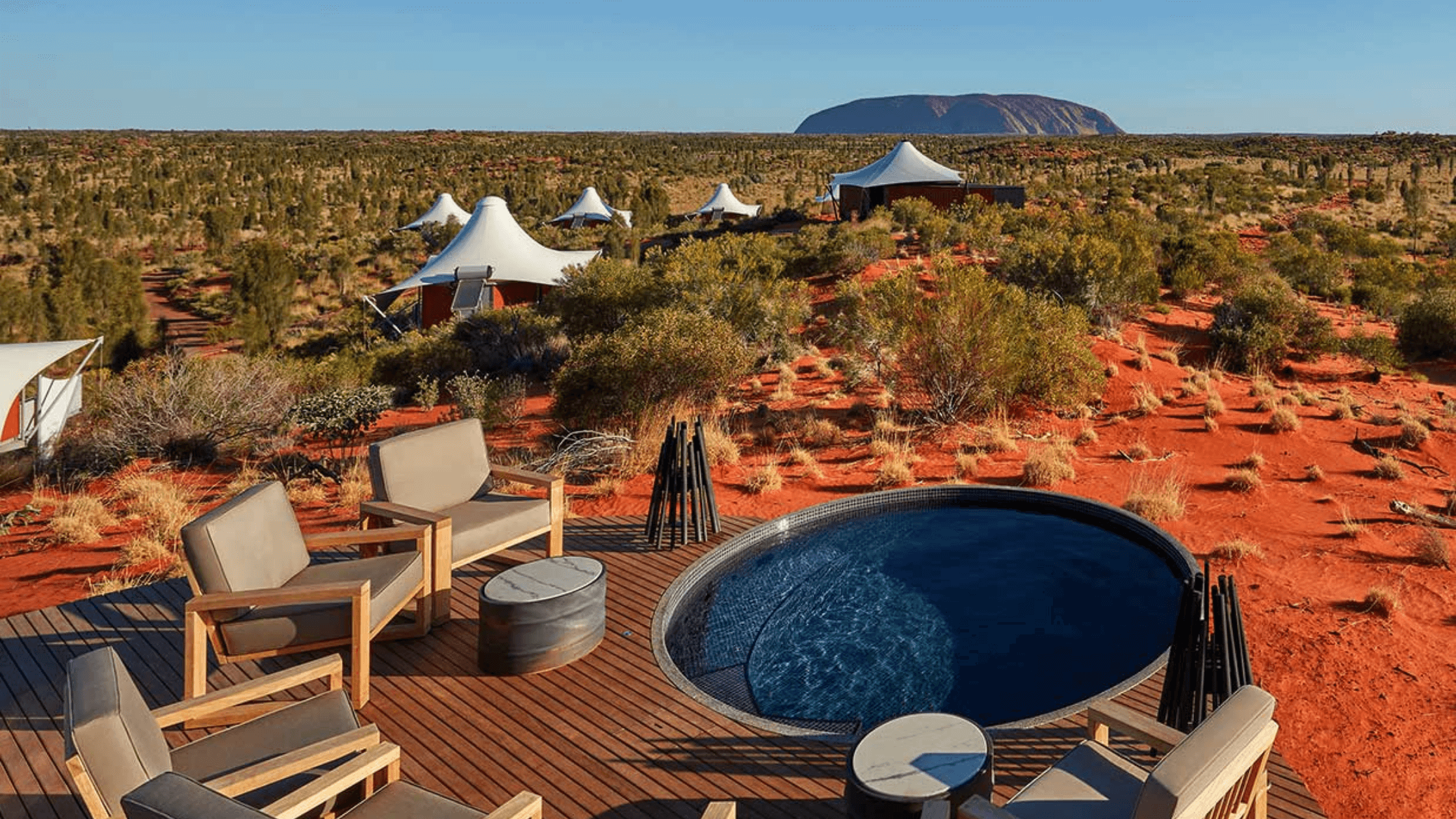 Each guest tent offers stunning views of Uluru and is designed with eco-friendly materials and modern comforts. Guests can enjoy guided walks with Aboriginal guides, learn about ancient traditions, and explore the desert landscape without leaving a trace. Inside the camp, there’s gourmet food, air conditioning powered by the sun, and even a library.