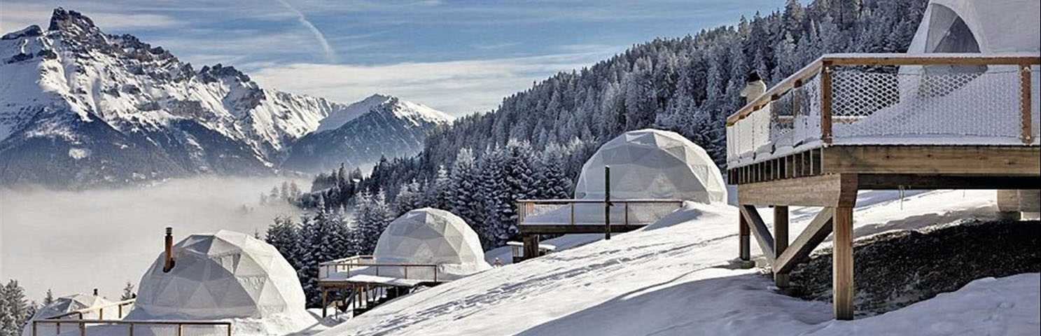 Whitepod Eco-Luxury Hotel (Switzerland) Whitepod is a mountain eco-hotel in the Swiss Alps made up of cozy dome-shaped pods. The pods are energy-efficient and built to have minimal impact on the land. The hotel uses solar energy, limits water usage, and follows strong recycling practices. It encourages guests to enjoy nature while using fewer resources.