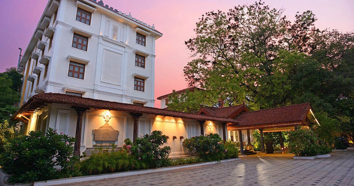 Guests stay in beautifully designed rooms that reflect classical Tamil architecture and art. The hotel offers cultural experiences like Carnatic music, Bharatanatyam dance performances, and traditional craft workshops.