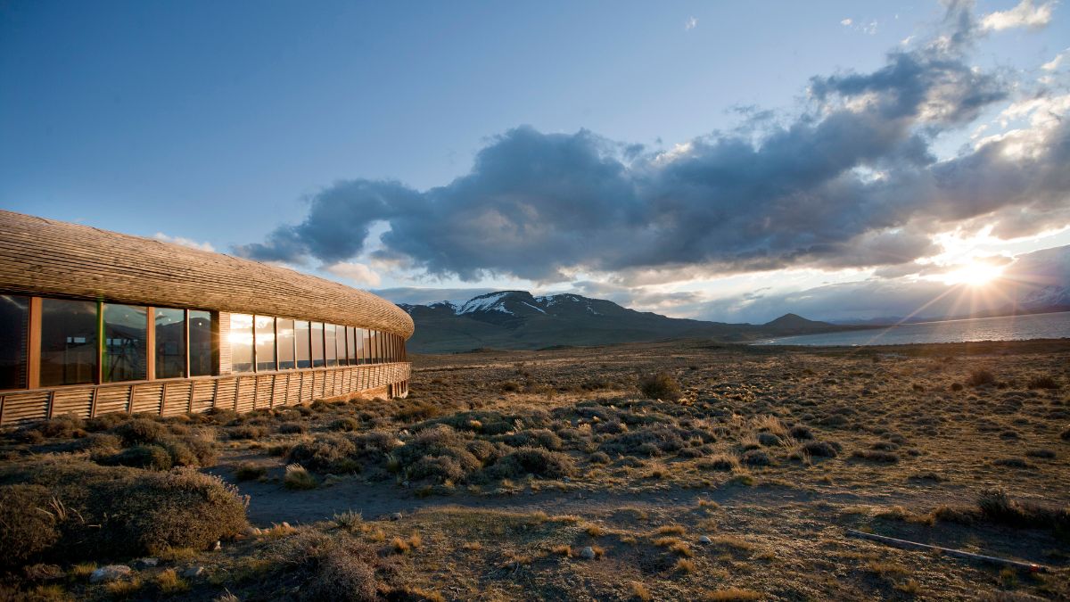 Tierra Patagonia is located near Torres del Paine National Park and blends perfectly with its surroundings. The building uses local wood and energy-saving systems. The hotel recycles, conserves water, and supports reforestation and local communities.