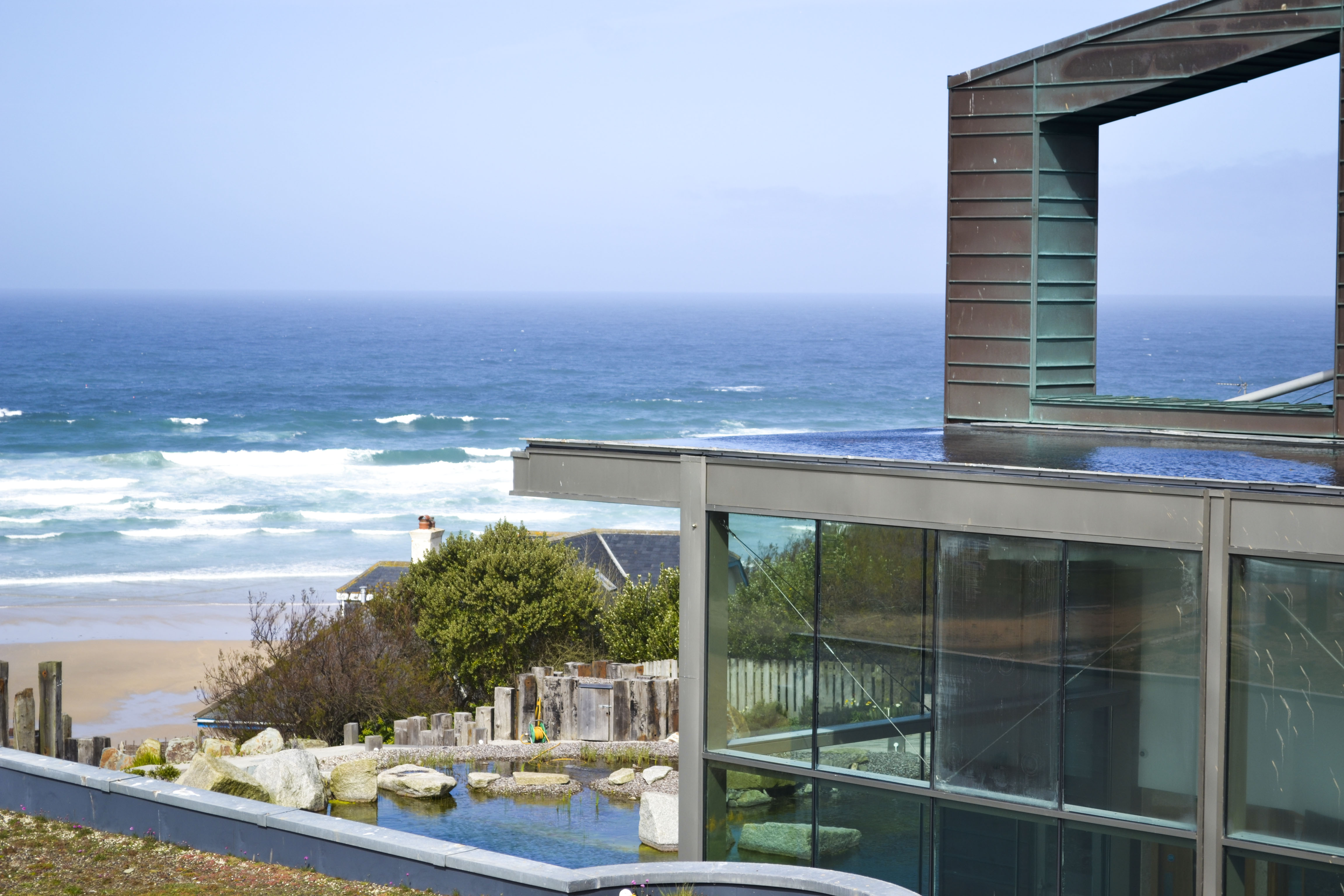 Guests enjoy sea-view rooms, a natural outdoor pool, and a spa that uses seaweed and other natural treatments. The hotel has a calm, peaceful vibe and offers healthy food made from local ingredients. There are clifftop hot tubs, quiet beaches, and walking trails right outside the door.