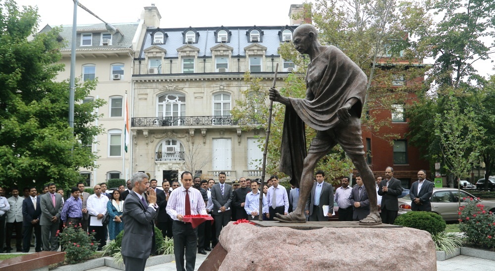 A group of people standing around a statue The Indian Embassy in Washington, D.C., is vital to strengthening India-USA strategic ties. The two countries collaborate on various fronts, including defence, trade, technology, and education. The embassy actively promotes Indian culture through festivals, film screenings, and academic interactions. It also supports the large Indian diaspora in the USA and encourages business and investment opportunities, thereby enhancing bilateral economic connections.