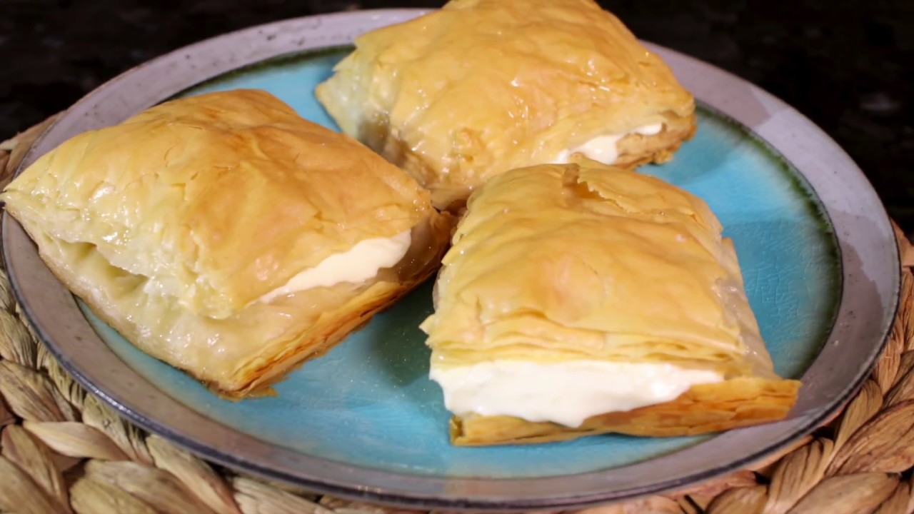 A celebrated Middle Eastern dessert popular in Iraq, featuring sweet, cheesy layers. The filling is flavored with cardamom and orange zest, and it is served warm.