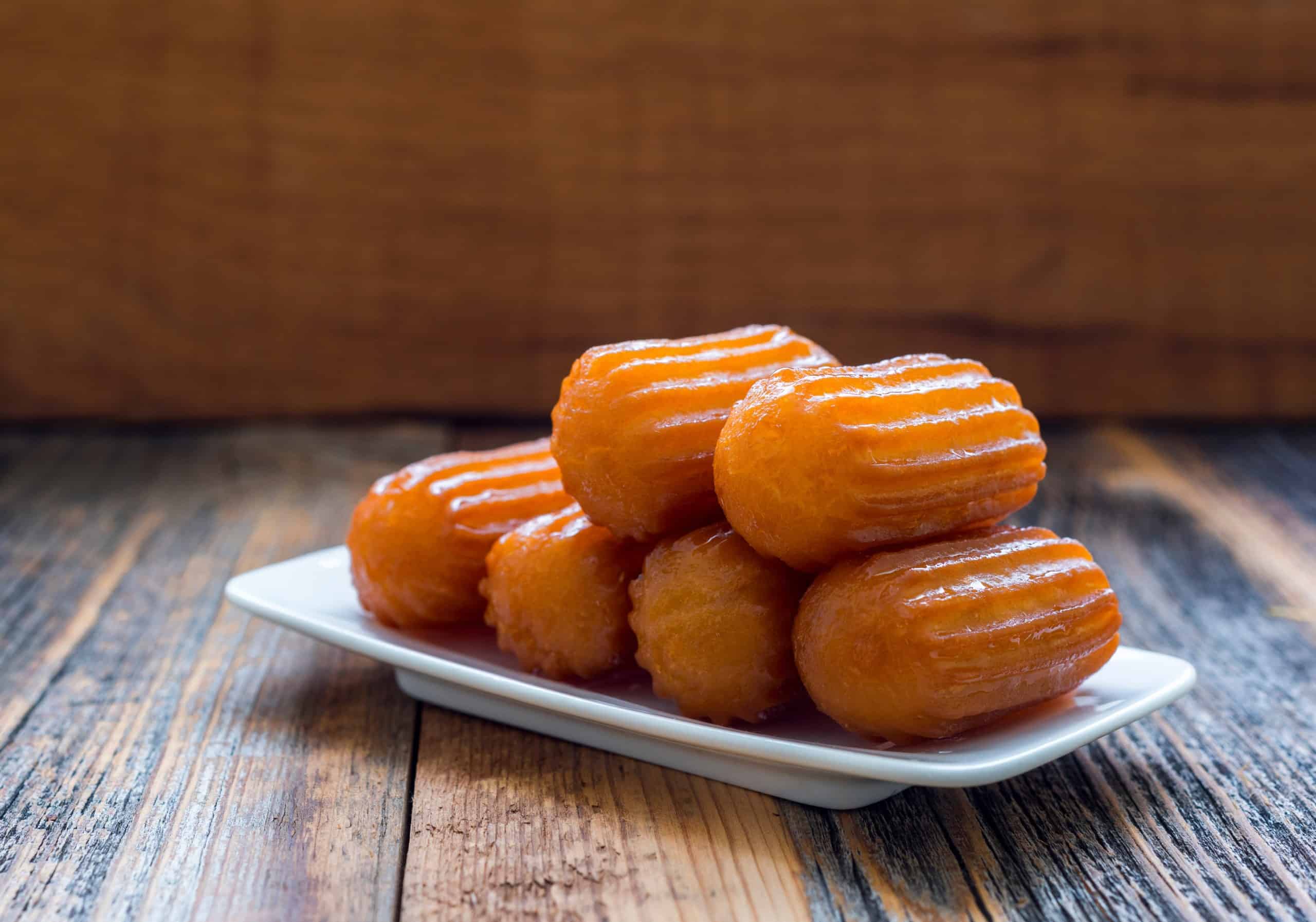 A delicious dessert of dough, cut into small bite-sized pieces, deep-fried, and soaked in syrup. These tasty little snacks are eaten cold, ideal alongside tea or strong coffee.