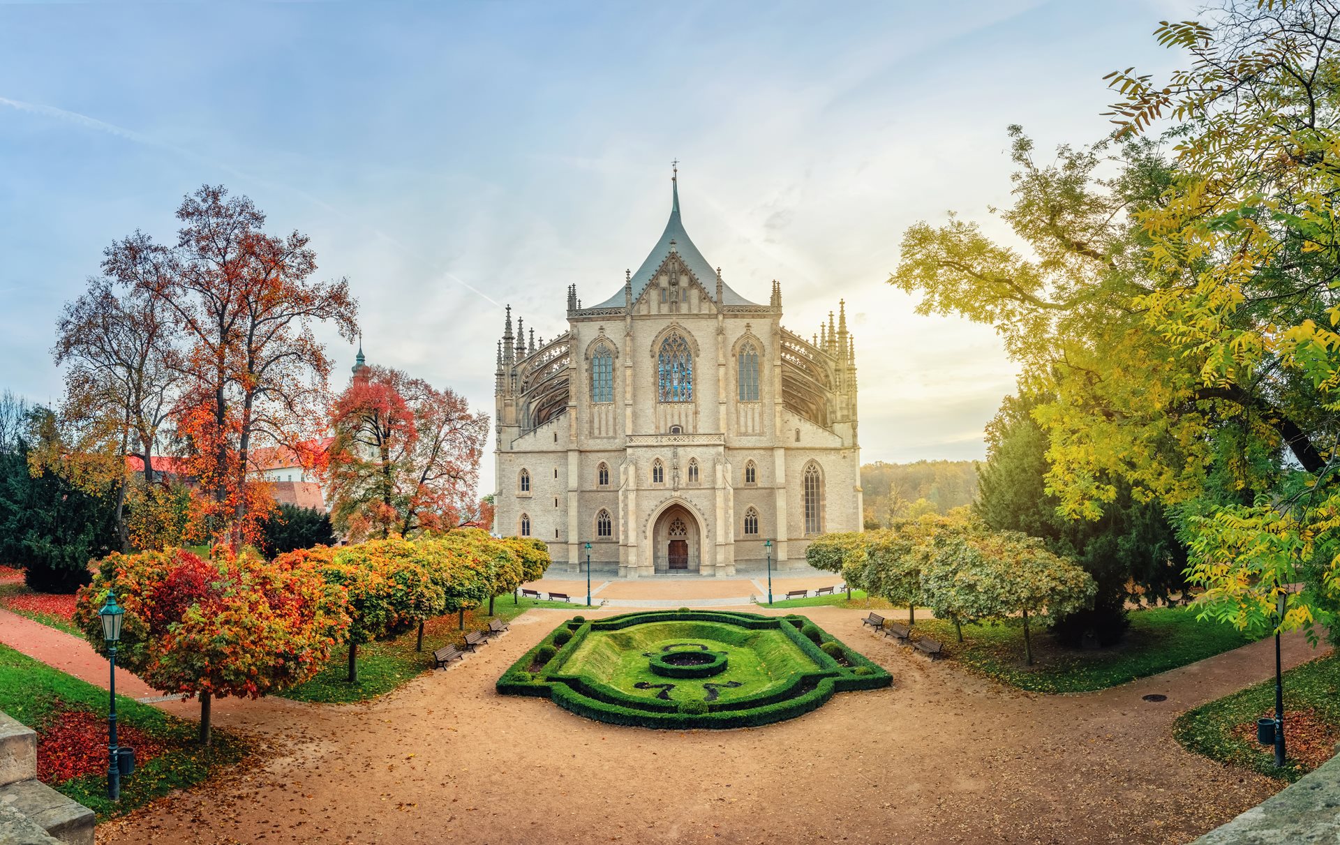 A stunning view of Cathedral Of St Barbara with its front garden The cathedral is dedicated to St. Barbara, the patron saint of the miners. This architectural marvel took over 500 years to complete. The colossal cathedral's appearance is the creation of Matyá Rejsek and Benedikt Ried.