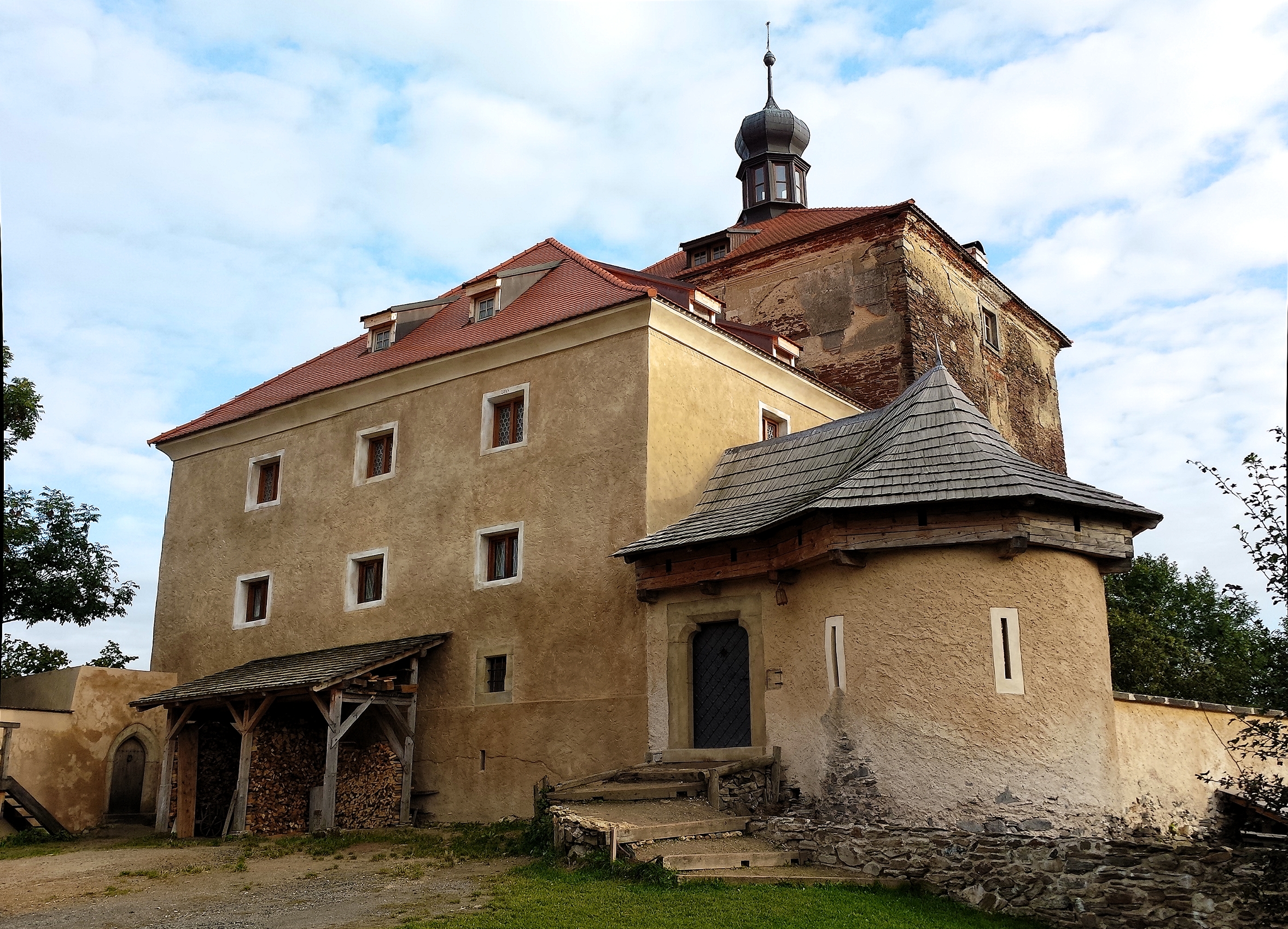 The famous Tvrz Malešov during day time The luxury tents tucked beneath it are white canvas constructions complete with wooden flooring, mattresses with soft linens, and a storage chest, and are supposed to replicate what aristocracy would stay in when traveling with the army. Each includes a beautiful private bathroom with hot showers, a toilet, and medieval artwork.