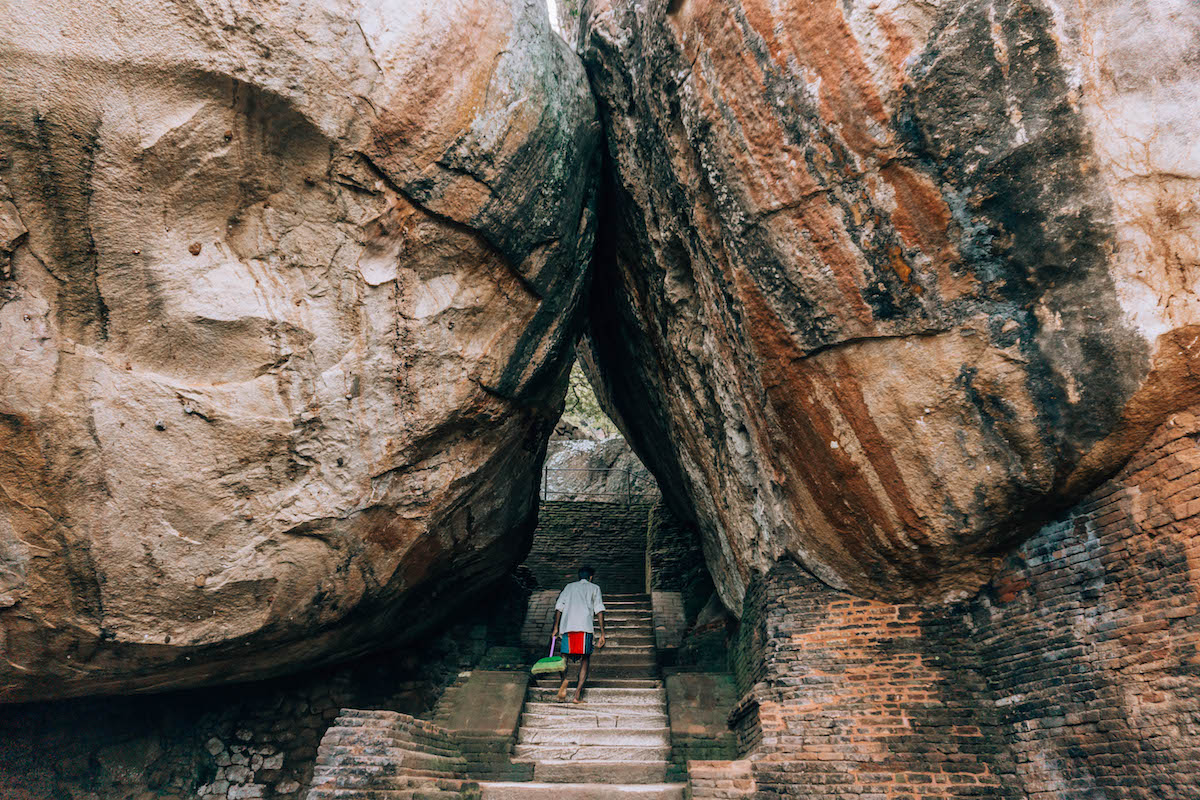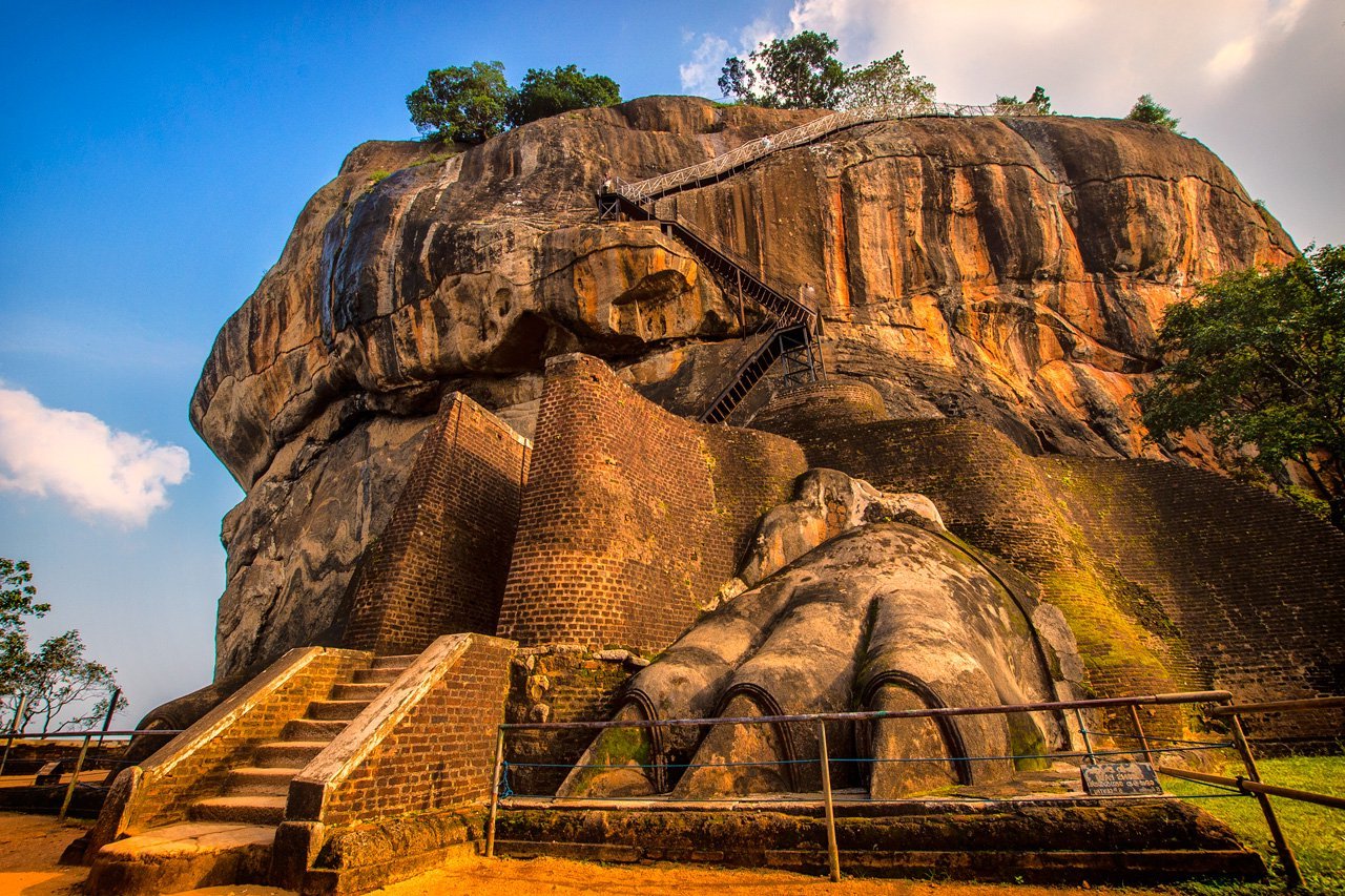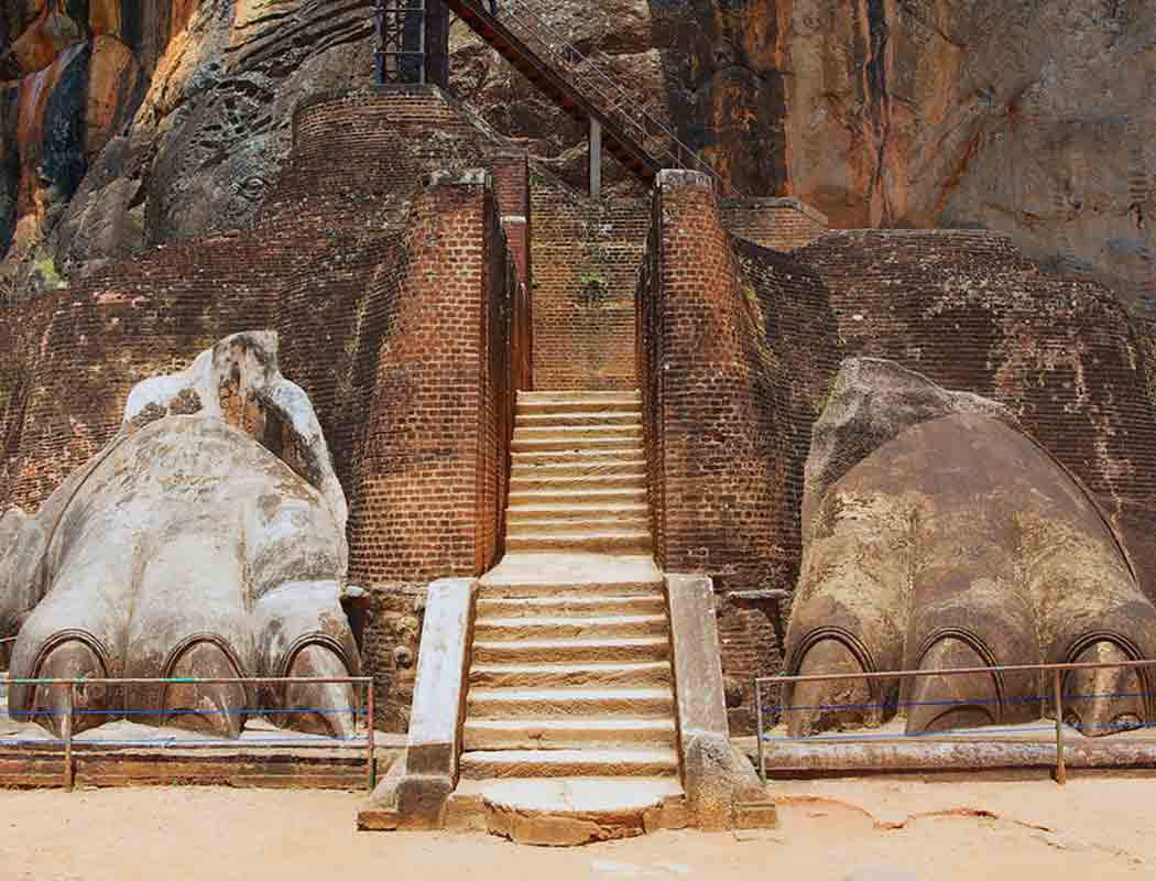 Sigiriya (named a UNESCO World Heritage site in 1982) is reached by corridors carved into the rock face between a pair of massive lion paws.