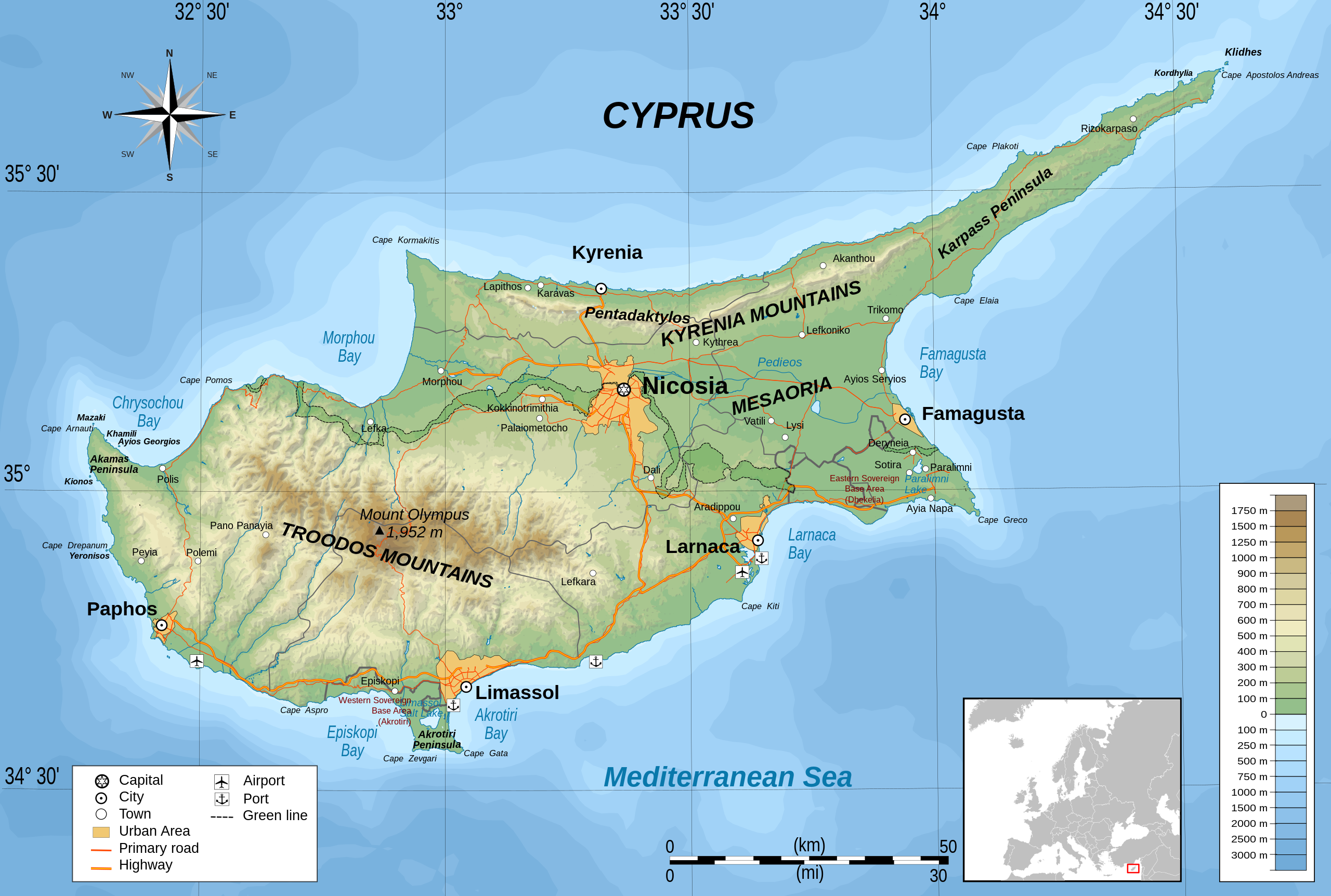 - Political Maps: Highlight the division between the Republic of Cyprus and Northern Cyprus, including the Green Line buffer zone.