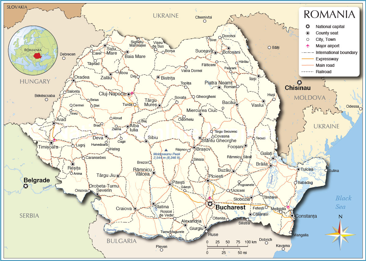 The Romania roads map provides a clear view of the country's extensive highway and road network. Romania boasts a well-developed infrastructure with modern highways connecting the major cities and regions. The road map is particularly useful for travelers who want to explore the country by car or bus.