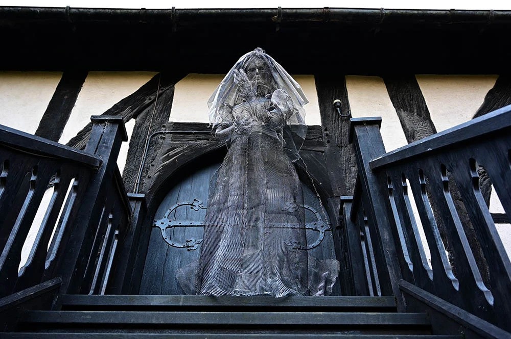 Spooky medieval facade with wooden beams and a ghostly figure draped in veil standing on balcony above doorway at night in York No city in Europe has a stronger claim to the title. York is the most haunted city in Europe, with over 500 documented hauntings recorded within its ancient walls. This concentration has never been matched on the continent.