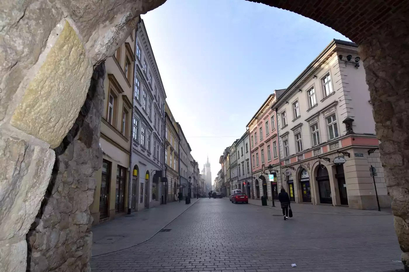 Quiet cobblestone street in Kraków framed by stone arch pastel buildings lining road lone pedestrian walking toward distant church Kraków carries two kinds of darkness: the ancient kind, rooted in legend, and the modern kind, which is harder to forget. Kraków's Wawel Castle is built on Wawel Hill, which, according to Polish legend, sits above a dragon's den and a chakra point, one of seven sacred energy sites on earth according to Hindu and Buddhist tradition.