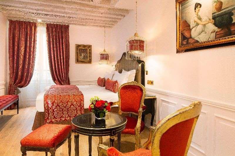 This hotel in the Marais area celebrates writer Marcel Proust. Its rooms have old-fashioned charm. You can relax privately in beautiful tile-covered spa areas. Some rooms are named after artists, adding a romantic touch. It's close to the Marché des Enfants Rouges market, great for food lovers. A lovely spot for book fans.