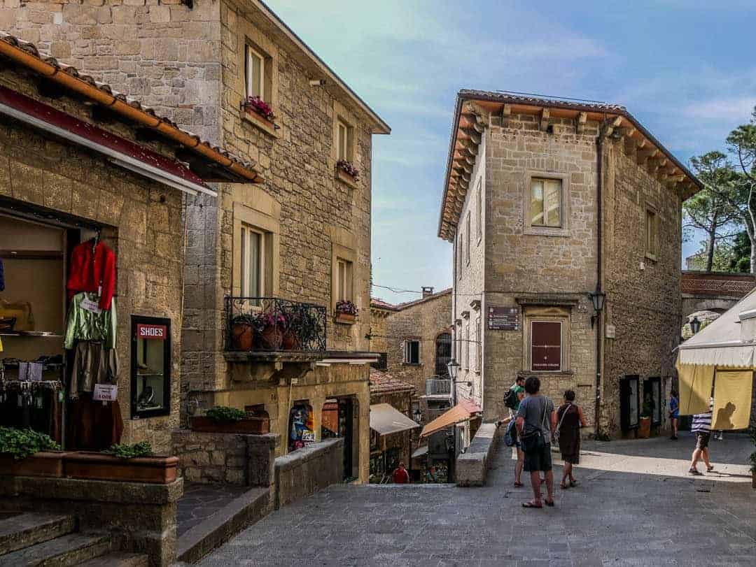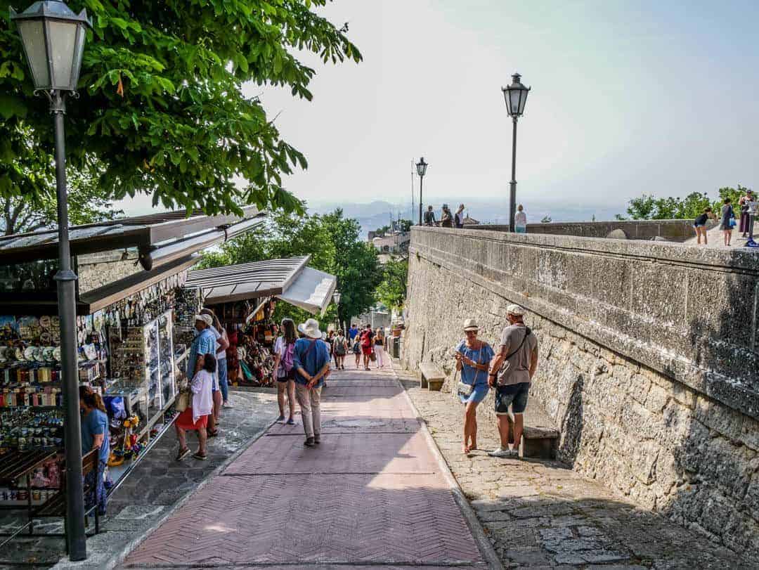 People walking around in the old part of the city of San-marino There are numerous stores, cafes, and restaurants. You might wish to pay a visit to the terrible Torture MuseumDuty-Free Shopping