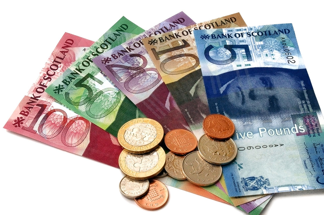Money And Spending In Scotland Planning a trip to Eagle Brae? Our luxury log cabin village offers the ideal retreat in the stunning Scottish Highlands. To help you get ready for your holiday, we’ve answered some of your questions about money, currency, and spending in Scotland. The currency in Scotland is pounds (£) and pence (p), with 100 pence making up one pound. Banknotes are available in £5, £10, £20, £50, and £100 denominations, while coins include 1p, 2p, 5p, 10p, 20p, 50p, £1, and £2.