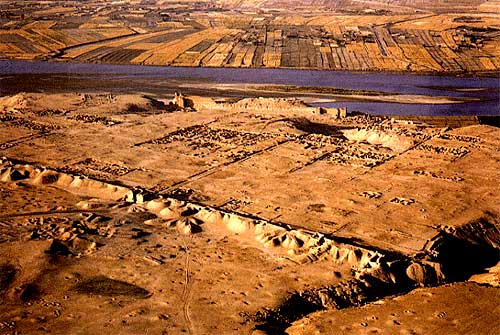 Dura-Europos was a Hellenistic, Parthian, and Roman frontier city located 90 meters above the Euphrates River's southwestern bank. In modern-day Syria, it lies near the settlement of Salhiyé.