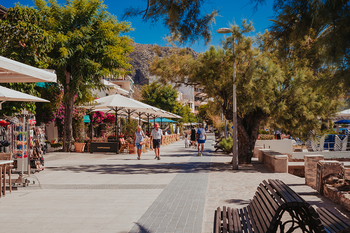 A group of people walking on a side walk Puerto Pollensais a classic example of a humble Spanish fishing village that has evolved into a thriving international community. With its low-rise hotels and charming seafront, it maintains an air of old-school glamour. The original Hotel Miramar and Hotel Illa d'Or are perfect examples of this historic charm, with the latter being a favorite of literary figures like Agatha Christie, who drew inspiration from the area for her works.Alcúdia In contrast, Alcúdia boasts a rich history dating back thousands of years. The old town is encircled by medieval walls and features narrow, cobblestone streets filled with shops, cafes, and a lively market that takes place every Tuesday and Sunday. The port area is more modernized, offering a range of amenities for tourists while still retaining a charming atmosphere.