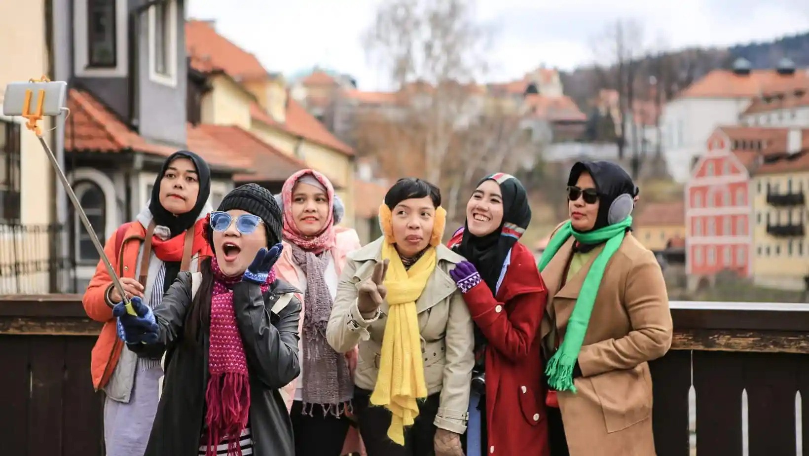 A group of people wearing scarfs for travelling Scarves are great for travelers because they are light and small, making them easy to pack. Unlike heavy jackets or big blankets, scarves don’t take up much space in your bag but can still be very useful. Since they can be used for warmth, comfort, or style, you don’t need to pack extra items for each purpose and this saves room in your luggage. If you're walking around a new city or moving through an airport, a scarf can fit many situations easily.